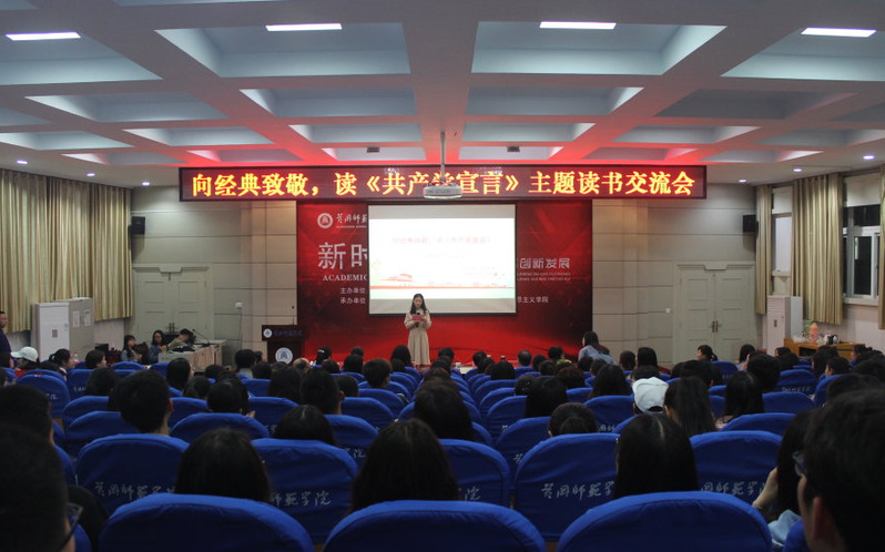 为进一步倡导多读书、读好书的文明风尚,推进公司文化建设,公司马克思主义读书社于4月22日晚7:10在学术报告厅B03 举办“向经典致敬,读共产党宣言”主题读书交流会。黄冈市团市委副书记涂梦佳应邀到现场进行指导,马克思主义读书社指导老师、威廉希尔williamhill一二年级员工、校青马班和青协代表以及各公司入党积极分子代表参加了此次读书交流会。