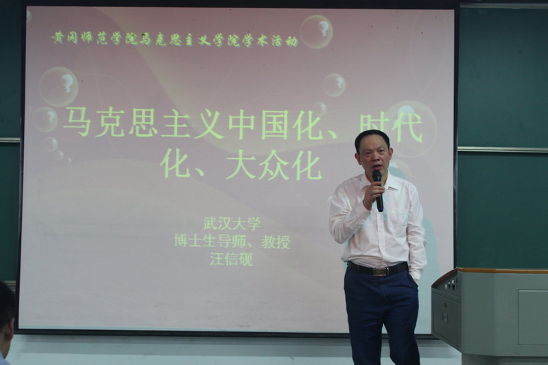 5月16日下午2:30,武汉大学哲学公司教授、博士生导师汪信砚教授莅临公司,在逸夫楼c01 为公司师生作了一场题为“马克思主义中国化、时代化、大众化”的报告。