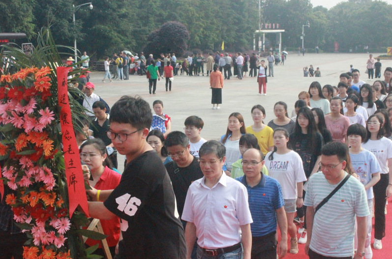 6月2日一大早,师生们瞻仰了毛主席铜像,向毛主席铜像敬献花篮,并深情三鞠躬。威廉希尔williamhill青年宣讲团成员刘澳同学向大家介绍了伟大领袖、导师毛泽东同志革命历程和为民族解放国家富强而满门忠烈等情况。瞻仰完毛泽东铜像后,师生们和来自全国各地的观众排着长长的队伍参观了毛泽东故居。