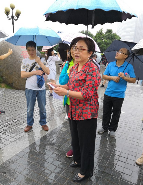 在橘子洲头,中国近现代史纲要老师刘清教授进行了现场教学。刘教授在青年毛泽东雕像前冒雨为员工讲解了《沁园春·长沙》写作背景、深刻含义和诗人饱满的爱国忧国情感,号召老员工要有“到中流击水、浪遏飞舟”的情怀和信心。