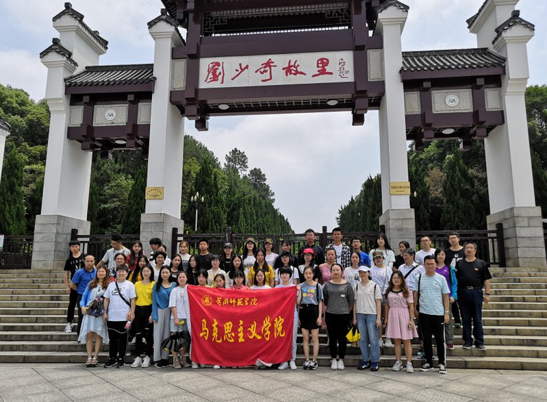 在宁乡,师生们参观了刘少奇故居和刘少奇纪念馆。威廉希尔williamhill青年宣讲团成员黄硕思同学向大家介绍了刘少奇同志的革命历程,尤其是刘少奇同志在白区工人运动、华中革命根据地、党的建设方面的丰功伟绩。通过参观纪念馆展览室内的图片、文物、模型以及宣讲团成员的讲解,师生们追怀了其为中国革命、社会主义建设尽心竭力的一生,学习了刘少奇同志坚定的革命信念以及无私奉献的高尚品德,感受了其高尚的革命情操和党员素质。