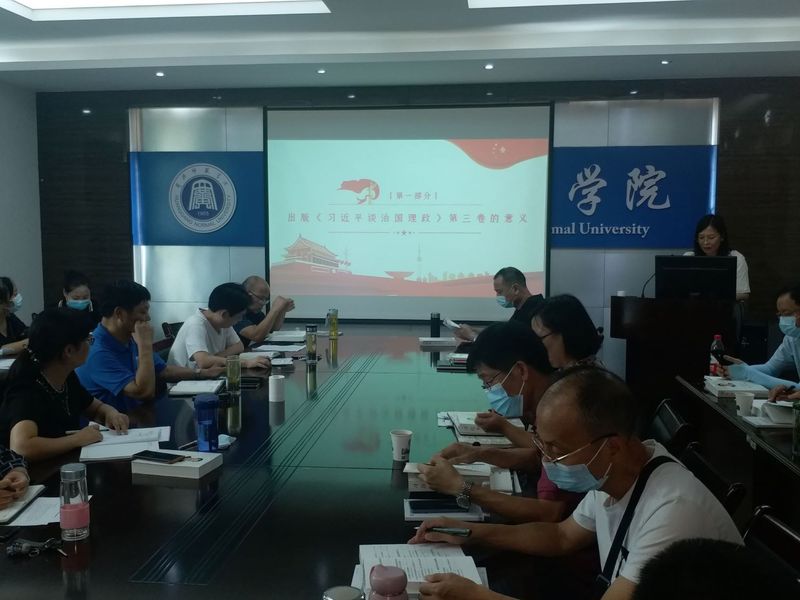 9月7日下午,威廉希尔williamhill在致远楼305会议室举行全体教师集体学习活动,《习近平谈治国理政》第三卷黄冈市委宣讲团成员、公司裴艳丽教授领学《习近平谈治国理政》(第三卷)。会议由公司党总支书记汪辉主持。