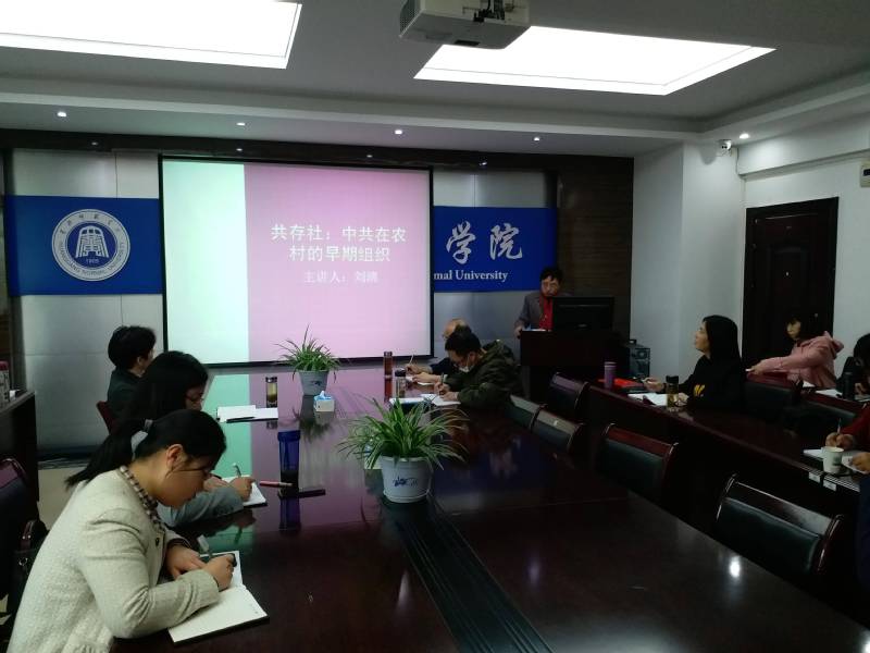 刘清教授结合黄冈革命老区红色文化资源,结合中国共产党在黄冈的早期发展历程,讲述了中国共产党在农村的早期组织—共存社的创立和发展。她从共存社建立的背景、性质和宗旨及意义三个部分详细对中国共产党在黄冈的早期组织发展进行了阐述和分析。