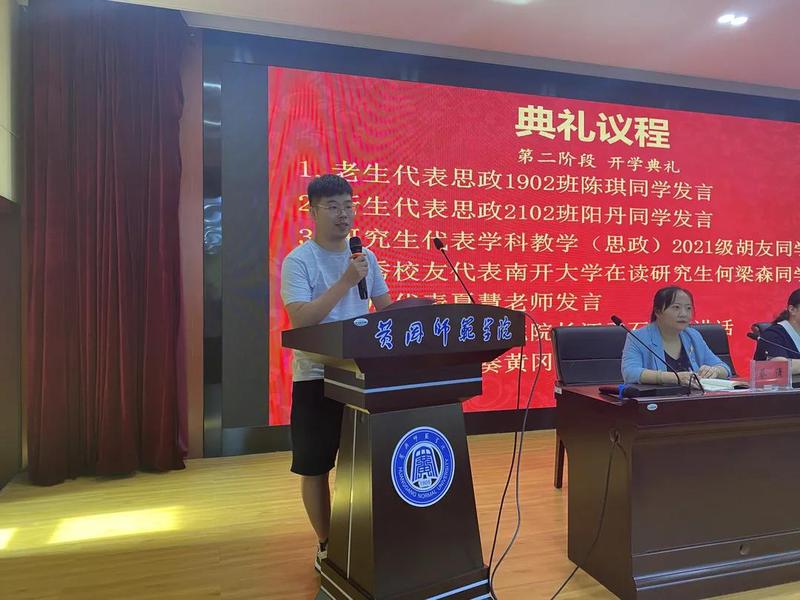 陈琪提到,凡是过往,皆为序章,来到黄师,便意味着新的开始,作为一名黄师学子要时刻牢记厚德,博学,力行,致远的校训,传承威廉希尔williamhill明道明德,真知真行的院训,展现出新时代中国青年的积极向上精气神,敢于拓展边界,挑战极限的勇气;希望大家能够在风华正茂的年纪里书写青春的新篇章。