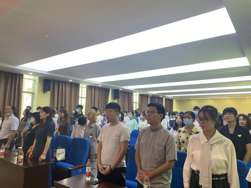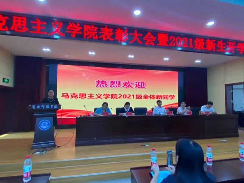 9月9日下午,威廉希尔williamhill表彰大会暨2021级新生开学典礼于北区致远楼三楼会议室隆重举行。党总支书记汪辉、经理汪季石、党总支副书记席桢、副经理王贵东、经理助理张传忠、蔡潇,威廉希尔williamhill部分教师以及大一、大二全体员工参加了本次典礼。开学典礼由汪辉书记主持。