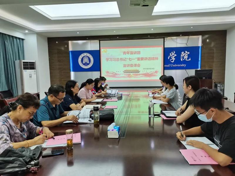 为深入学习贯彻习近平总书记在庆祝中国共产党成立100周年大会上的重要讲话精神,并做好重要讲话精神专题宣讲工作,2021年9月18日下午,公司在致远楼305召开了青年宣讲团学习习总书记“七一”重要讲话精神宣讲备课会。特别邀请党史研究专家、黄冈市习近平总书记“七一”重要讲话精神理论专家宣讲团成员刘清老师和彭旺林老师进行指导,公司党总支书记汪辉老师、副书记席桢老师、以及青年宣讲团全体成员参加了备课会。