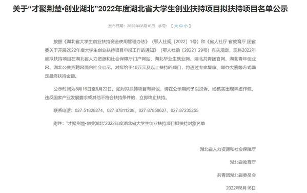近日,湖北省人力资源与社会保障厅、湖北省教育厅、共青团湖北省委员会公布的“才聚荆楚·创业湖北”2022年度湖北省老员工创业扶持项目拟扶持项目名单中,公司思政201702班黄玲同学的项目获得5万元资助,公司此次共有9名往届、在校老员工创业项目入选。