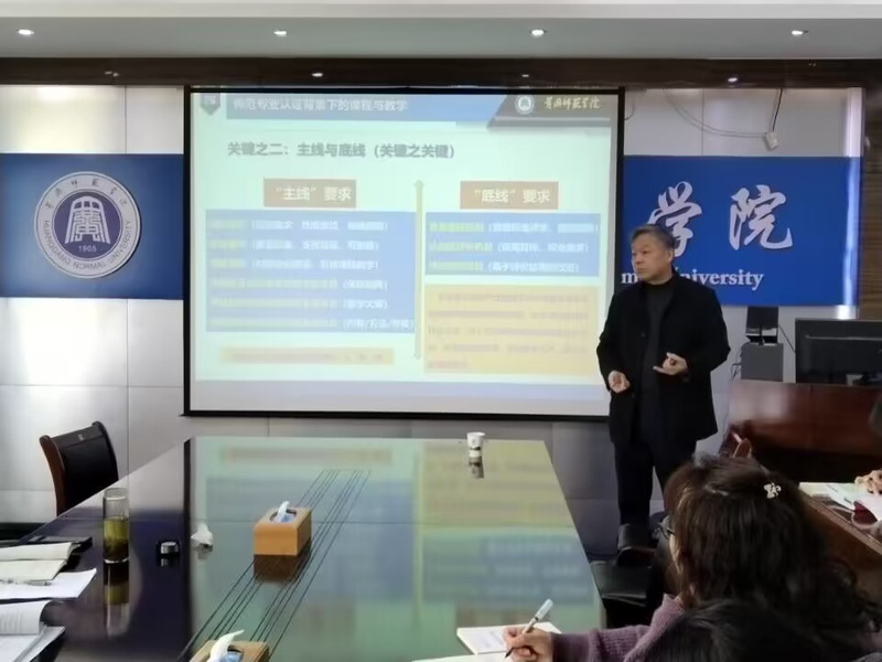 为推进公司师范专业认证工作的顺利开展,2023年3月2日下午2点,公司特邀请公司二级教授、教育部高等公司师范专业认证专家、享受湖北省政府津贴专家项俊老师开展了一场题为《师范专业认证背景下课程与教学》的辅导报告。报告地点设在致远楼305会议室,报告由威廉希尔williamhill副经理王贵东主持,威廉希尔williamhill全体领导和教师参加。