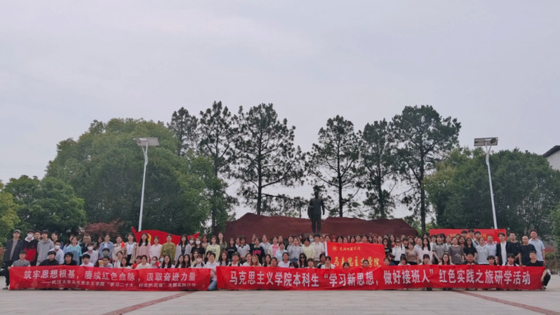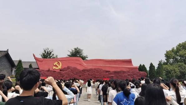 全体师生早晨7:30从公司徒步出发,中午13:30抵达目的地。在陈潭秋烈士雕像前,全体师生默哀悼念。全体青年团员重温入团誓词,用洪亮的声音、铿锵的誓言,表达着自己传承红色基因、赓续红色血脉的坚定决心。