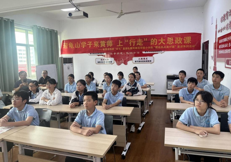 9月26日,省委讲师团“百马”宣讲队公司小分队为结对实践点麻城市龟山镇开展“理论热点面对面”2025年系列宣讲第二场活动。本次活动以“迎龟山学子来黄师,上‘行走’的大思政课”为主题,通过课堂观摩学习、实地参观体验、座谈培训交流等形式为麻城市龟山镇中员工代表带来一场富有创意的大思政课。